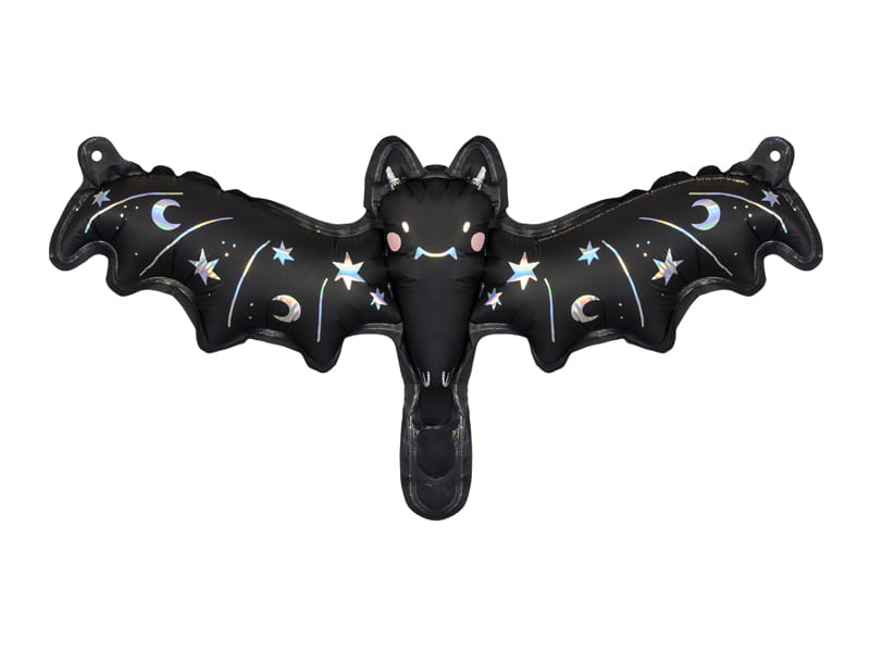 Balon foliowy Nietoperz w kolorze czarnym z holograficznym nadrukiem, wymiary przed napompowaniem ok. 40,5 x 13 cm (16 x 5"), wymiary po napompowaniu ok. 35 x 12 cm (14 x 4,5"). Do napompowania powietrzem. Zestaw zawiera słomkę.