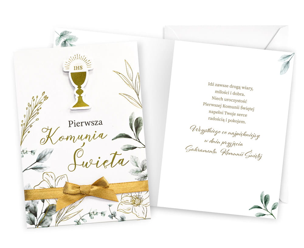 Kartka B6 z ozdobnej serii Dream Cards na Komunię - nieduża, ale robi wrażenie dzięki atrakcyjnej kolorystyce i ciekawym zdobieniom.