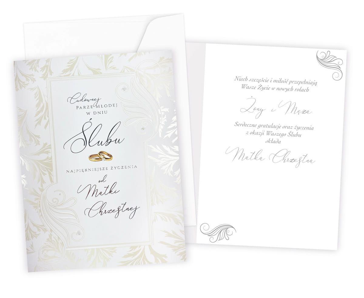 W środku każdej kartki znajdują się dobrane do okazji życzenia, a do kartki dołączona jest dopasowana koperta.