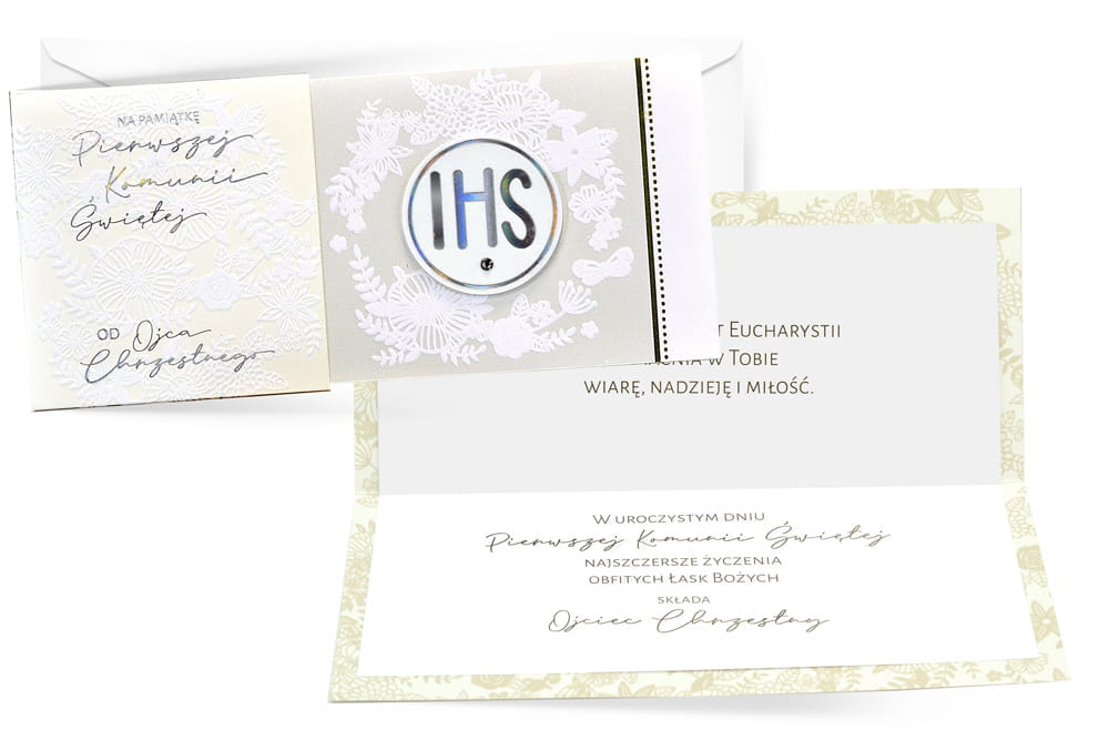 W środku każdej kartki znajdują się dobrane do okazji życzenia, a do kartki dołączona jest dopasowana koperta.