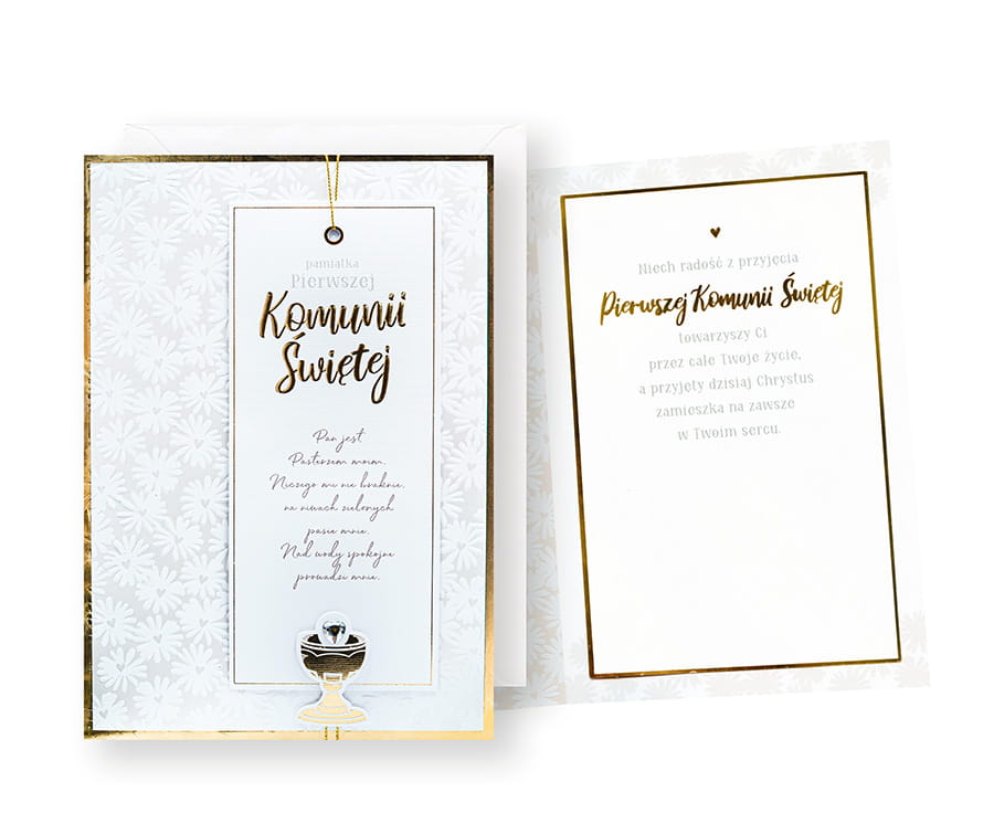W środku każdej kartki znajdują się dobrane do okazji życzenia, a do kartki dołączona jest dopasowana koperta.