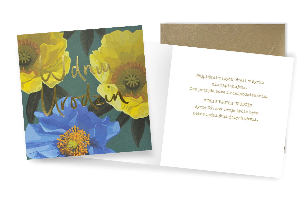Środek kartki posiada specjalnie dopasowane życzenia z miejscem na własną dedykację.