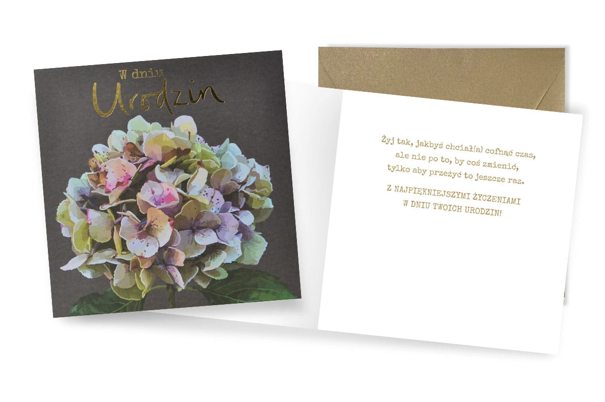 Każda kartka QRP zdobiona jest złotą folią oraz wyróżnia się przepięknym kwiatowym motywem na froncie.