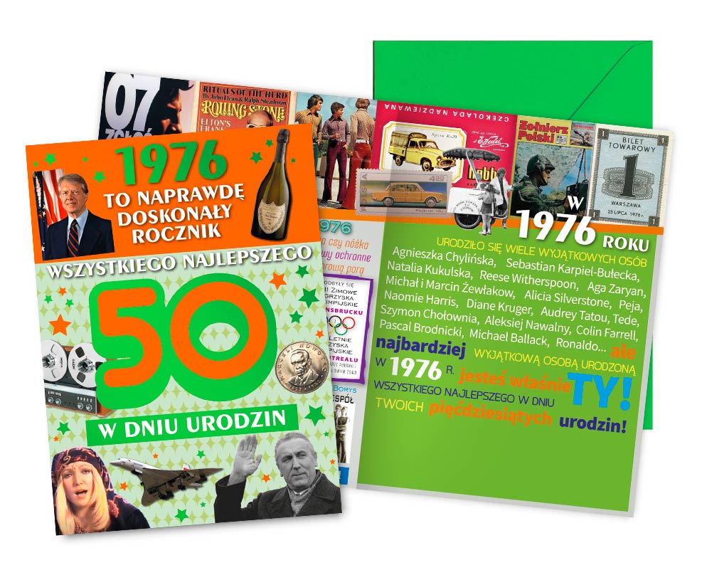 Kartka z serii To Był Rok, w której w środku i na froncie znajdują się ciekawe wydarzenia z danego roku. Wykonane z niezwykłą dbałością o szczegóły, zdobione folią holograficzną i w całości pokryte folią matową dla podkreślenia efektu prostoty i elegancji. Każdy karnet zawiera w środku starannie dobrane życzenia oraz dopasowaną kopertę.
