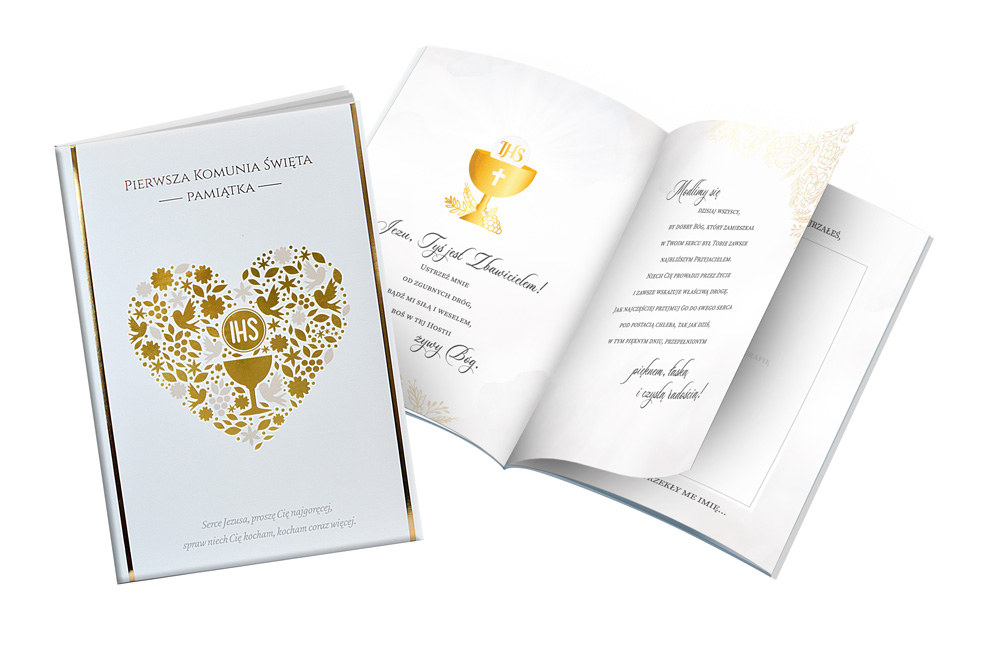 Książeczki PMB to produkt wyjątkowy - pięknie wydany, elegancki, a jednocześnie atrakcyjny cenowo. Każda książeczka ma twardą okładkę, kolorowe wnętrze z pięknymi grafikami i cytatami oraz życzenia i miejsce na osobistą dedykację. Na wewnętrznej stronie zdobionej złotą lub srebrną folią okładki wklejona jest specjalna, nieduża koperta, w której można przekazać kartę podarunkową lub banknot. Książeczka PMB Kukartka to idealny prezent na wyjątkową okazję, jaką niewątpliwie jest Pierwsza Komunia Święta.
