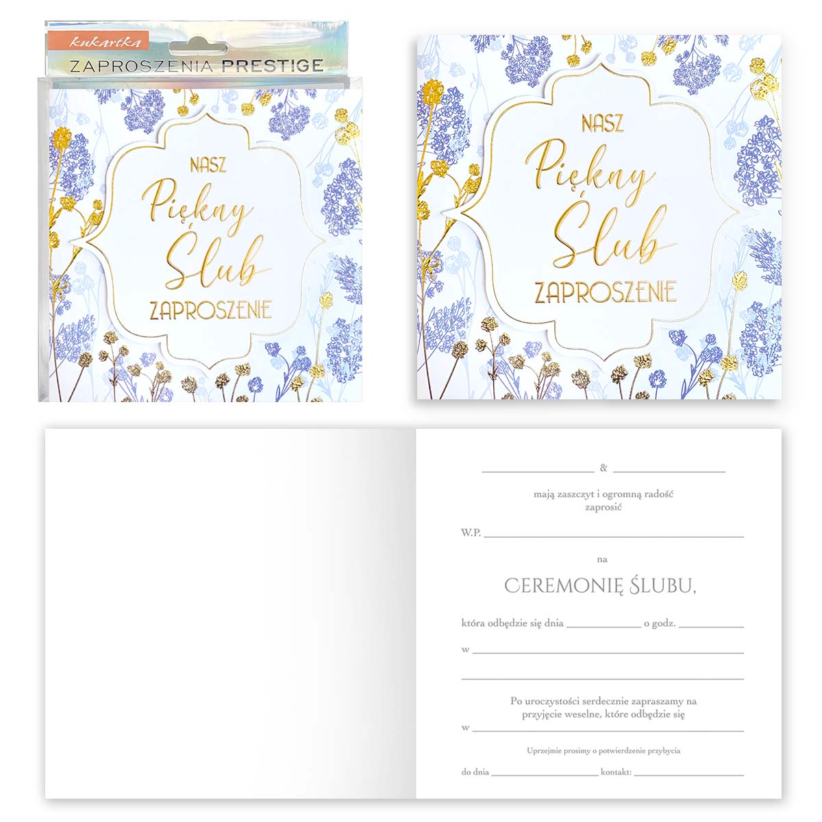 Zaproszenia pakowane są po 5 sztuk, mają w zestawie dopasowane koperty, a na specjalnej wkładce z tyłu można przeczytać tekst zaproszenia.