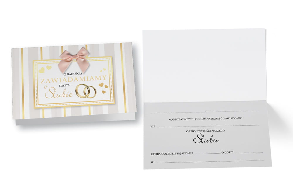 Zawiadomienie na Ślub Passion Moments Kukartka PMZ-046 Zawiadomienia z serii Passion Moments PMZ to idealne połączenie stylu i przystępnej ceny. Zawiadomenia PMZ drukowane są na satynowym, śnieżnobiałym papierze, a każde posiada przynajmniej dwa uszlachetnienia: złocenie lub srebrzenie, elementy z perłowej lub holograficznej folii itp. W opakowaniu znajduje się 5 zawiadomień i 5 dopasowanych do nich kopert. Cechy szczególne: typ produktu: zawiadomienie na ślub, opakowanie: woreczek zawierający 5 sztuk zawiadomień z kopertami, zdobienia: przynajmniej dwa: złocenie, srebrzenie, perłowa lub holograficzna folia, brokat, okazja: ślub